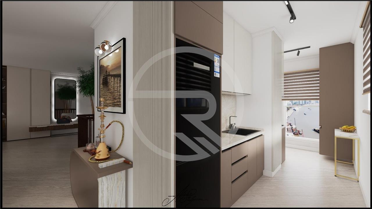 Nivelul 2 (etajul 7) - living + bucatarie open space, 1 hol, 1 baie.