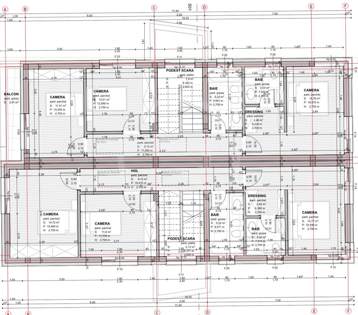 ETAJ : 3 dormitoare,2 bai,1 dressing,1 hol casa scarii,1 balcon