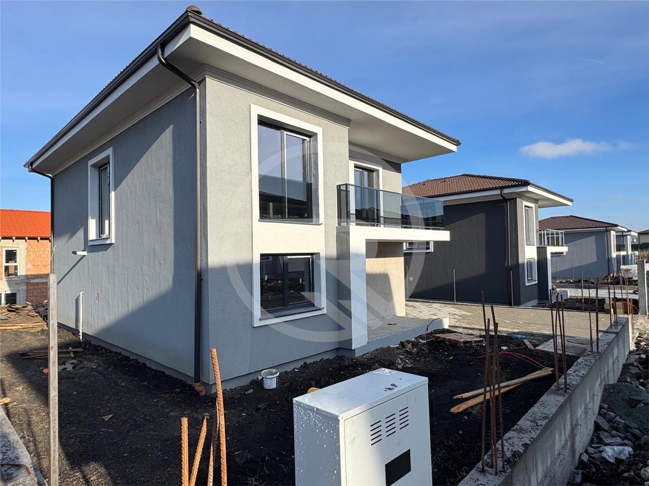 Rower Estate va propune spre vanzare Casa individuala situata in Chinteni, cu un regim de inaltime Parter + Etaj ,avand 5 camere, suprafata utila de 120 mp utili + teren 500 mp fiind compartimentata astfel : - Parter: 1 Living +1 bucatarie open space ,1 Loc de luat masa,1 hol,1Dormitor/birou,1 baie, casa scarii, 1 terasa. Etaj: 3 dormitoare, 2 bai, 1 hol,dressing ,2 balcoane. Se ofera spre vanzare pregatita pentru finisaje la stadiul de semifinisat, cu sapa autonivelanta, tencuiala si instalatile trase la pozitie. Casa beneficiaza de Centrala Termica ,Incalzire in pardoseala la parter+etaj. Gradina este amenajata cu pavaj , Imprejmuire cu gard, fundatie de beton, grilaj metalic .