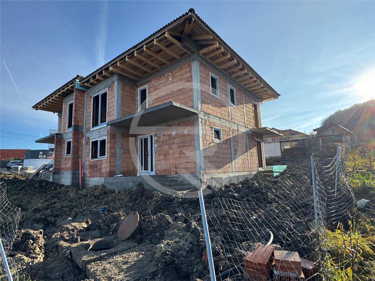 Rower Estate va propune spre vanzare Casa Tip Duplex situata in Chinteni,cu un regim de inaltime Parter + Etaj , situata in zona nou dezvoltata ,avand 5 camere, suprafata utila de 119 mp utili + teren 450 mp fiind compartimentata astfel : - Parter: 1 Living,1 bucatarie ,1 Loc de luat masa,1 camera/birou,1 debara,1 baie,1 hol intrare,casa scarii, 1 terasa . Etaj: 3 dormitoare, 2 bai, 1 dressing,1 hol casa scarii + POD . Se ofera spre vanzare pregatita pentru finisaje la stadiul de semifinisat, cu sapa autonivelanta, peretii gletuiti si instalatile trase la pozitie.Casa beneficiaza de Centrala Termica,Incalzire in pardoseala la Parter + Etaj. Gradina va fi amenajata cu dale pavaj , Imprejmuire cu gard, grilaj metalic .Finalizare proiect Mai 2025!
