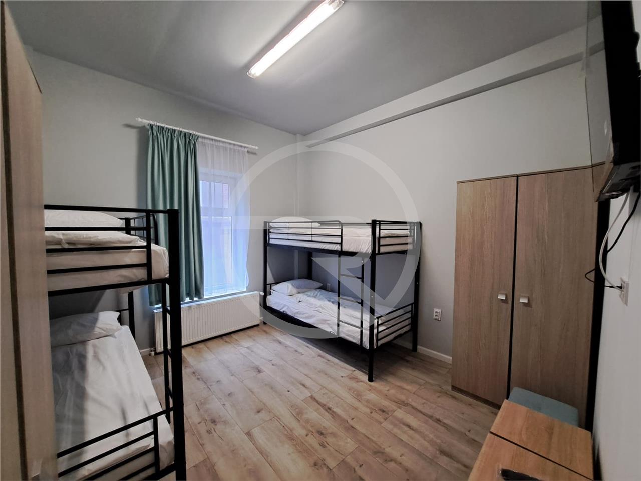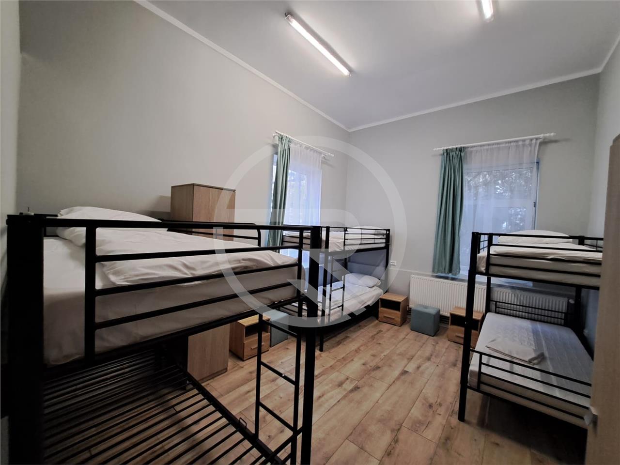 Rower Estate va propune spre inchiriere un hostel amplasat pe intreg etajul unei cladiri, situat in zona Piata 1 Mai. Proprietatea este compusa din 8 camere, fiecare cu baie proprie, 2 bucatarii complet functionale si 1 hol de acces. Spatiul are o capacitate de cazare de pana la 47 de persoane. Se inchiriaza complet mobilat si utilat, fiind dotat cu paturi suprapuse, pregatit pentru cazarea imediata a unui numar mare de persoane. In pretul chiriei sunt incluse toate utilitatile. Proprietatea se preteaza excelent pentru echipe mari de muncitori sau grupuri organizate si este disponibila pentru inchiriere pe termen lung.