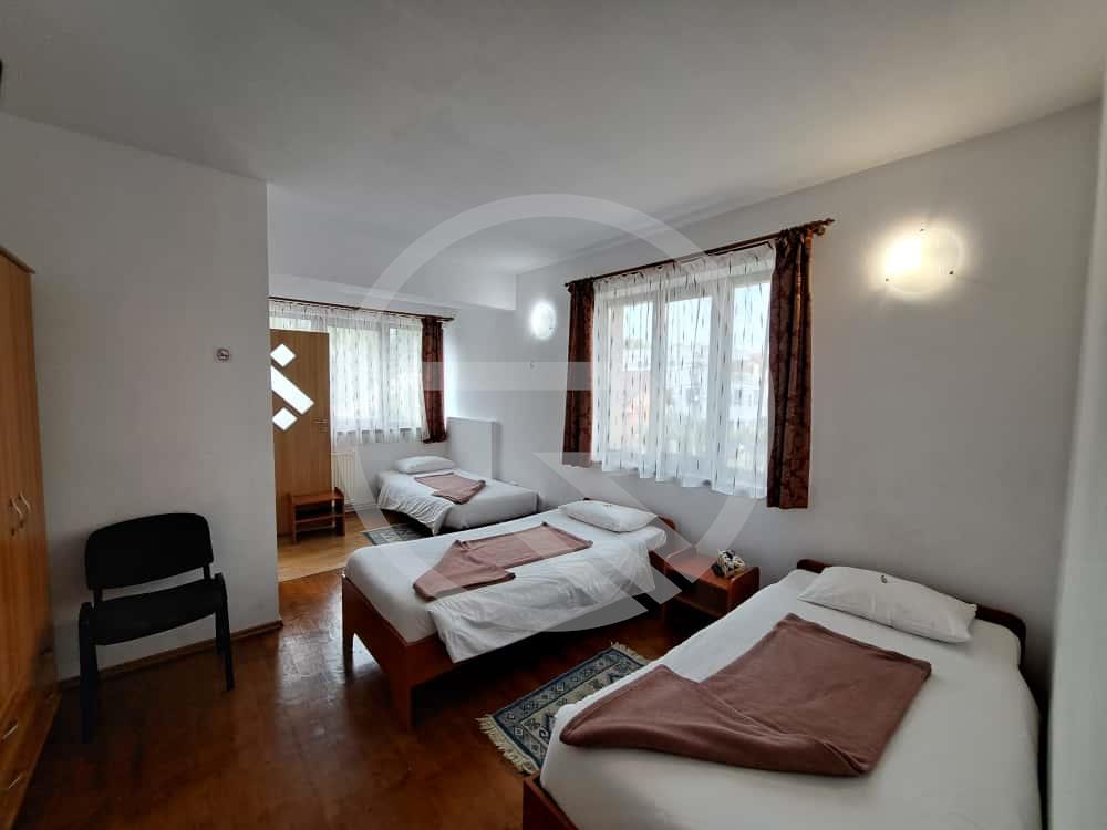 Rower Estate va propune spre inchiriere o cladire pentru locuit, cu regim de inaltime P+E+M, situata in cartierul Zorilor, intr-o zona linistita si usor accesibila. Imobilul dispune de 9 camere, fiecare dotata cu baie proprie, cu o capacitate totala de cazare de 23 de persoane, precum si de 2 bucatarii, ceea ce il face potrivit atat pentru activitati rezidentiale de tip coliving sau cazare. Cladirea este amplasata pe o curte privata si beneficiaza de 4 locuri de parcare, un avantaj important intr-o zona intens circulata. Proprietatea se ofera mobilata si utilata complet, cu toate dotarile necesare pentru a fi utilizata imediat.