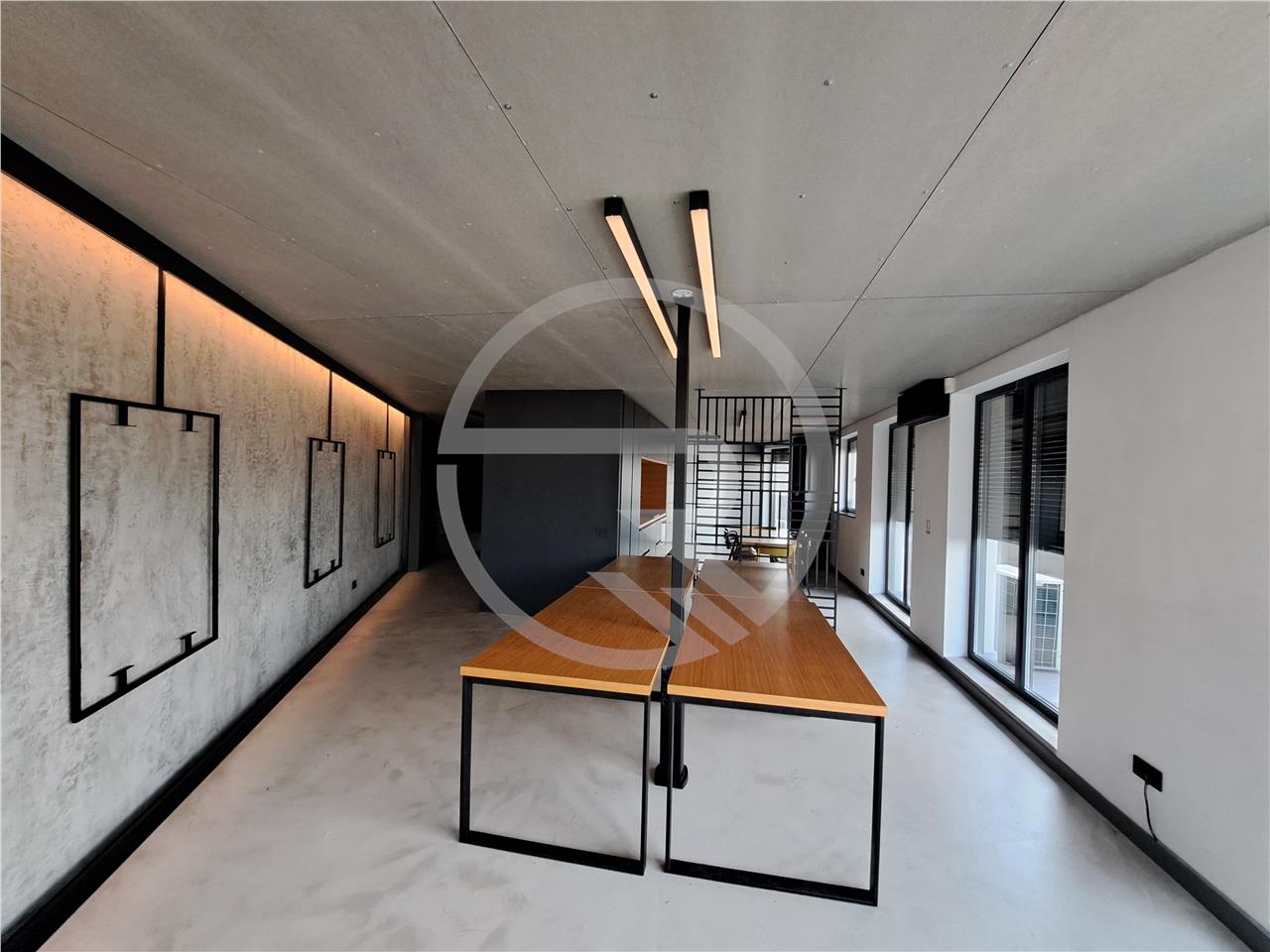 Spatiul se preda complet mobilat, iar bucataria este utilata integral, oferind un plus de functionalitate. Amplasarea excelenta si facilitatile moderne fac din acest spatiu o alegere ideala pentru orice afacere care isi doreste un sediu gata de utilizare, bine pozitionat si complet echipat.